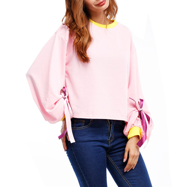 sweatshirt look so stylish. On the other hand,the puff sleeve design and lace-up design at sleeve part are the highlights.