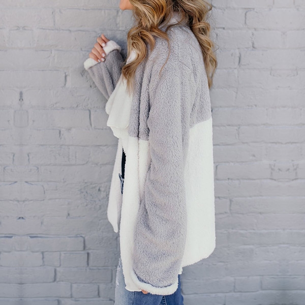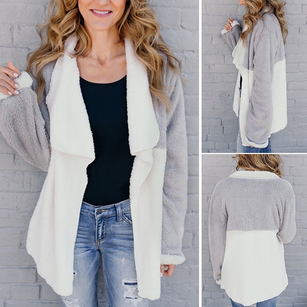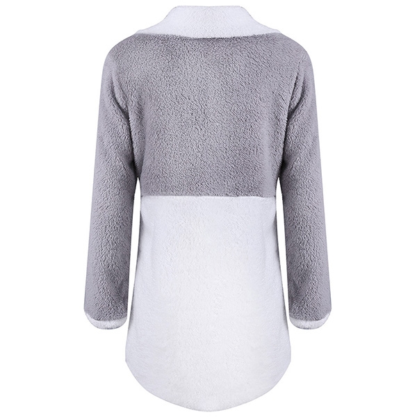 polyester material,with plush lapel collar,long sleeve and contrast color style.The high quality material is