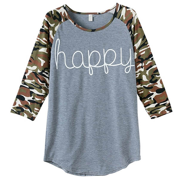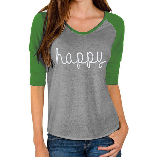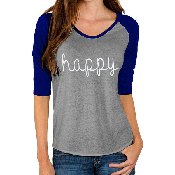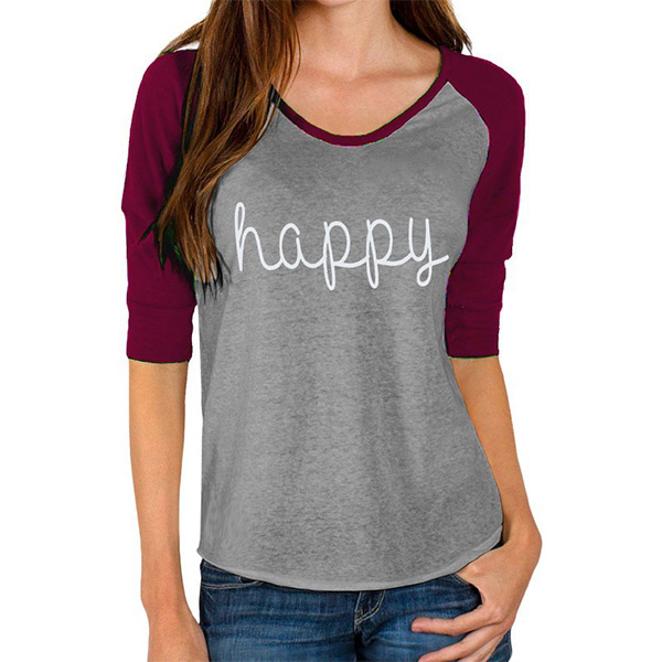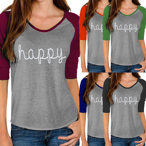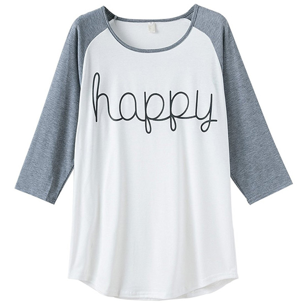 color and letters printed design make this piece look so stylish. Finished with 3/4 sleeve and round neck,