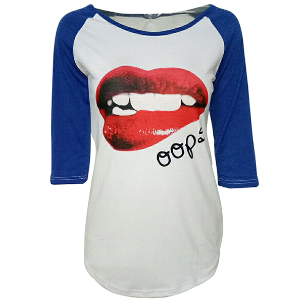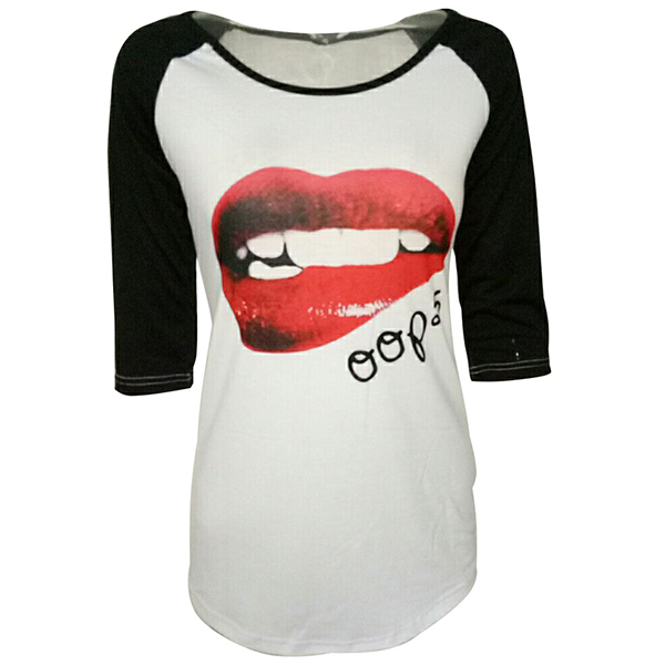 Easy to achieve for a cozy,laid-back and stylish style with the help of this t-shirt. Its conrtast color design and red-lip printed