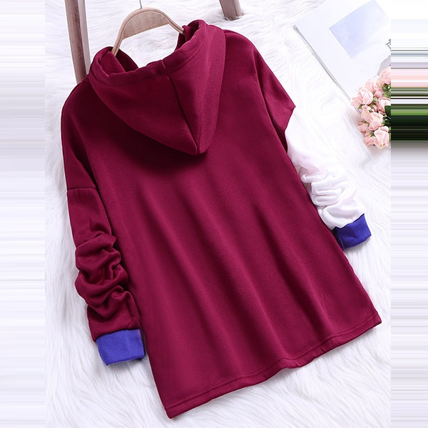 eyes focused on this hoodie! Contrast color style,finished with long sleeve and hooded silhouette,