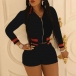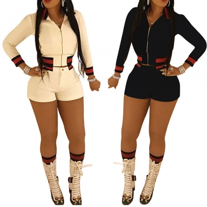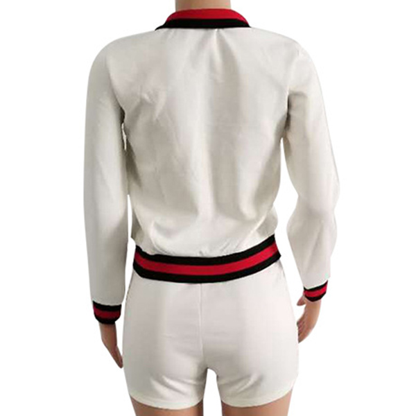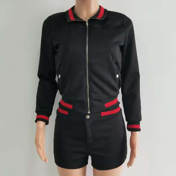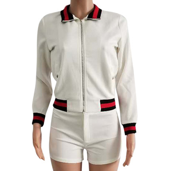 Including a long sleeve sports coat and a high waist shorts,the contrast color design will enhance its design style.