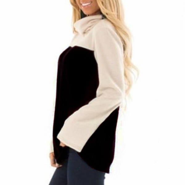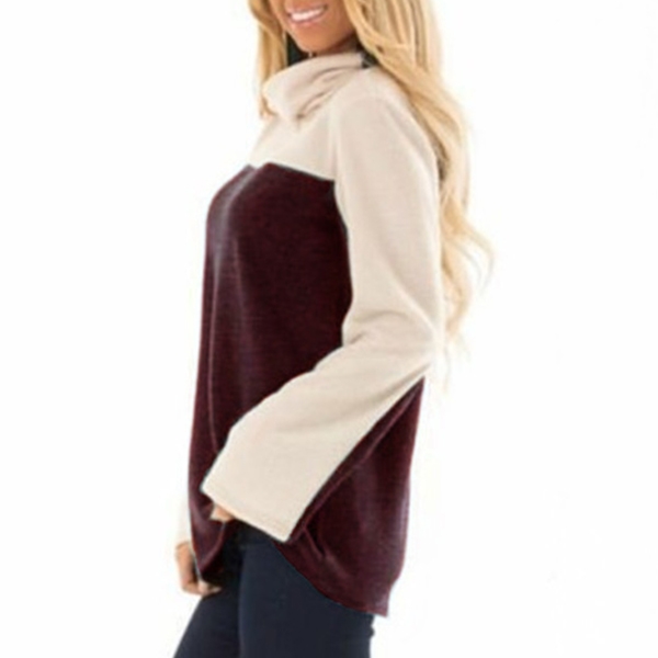 Contrast color style,the cowl neck design will make this piece look more attractive,while the soft