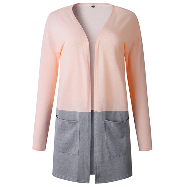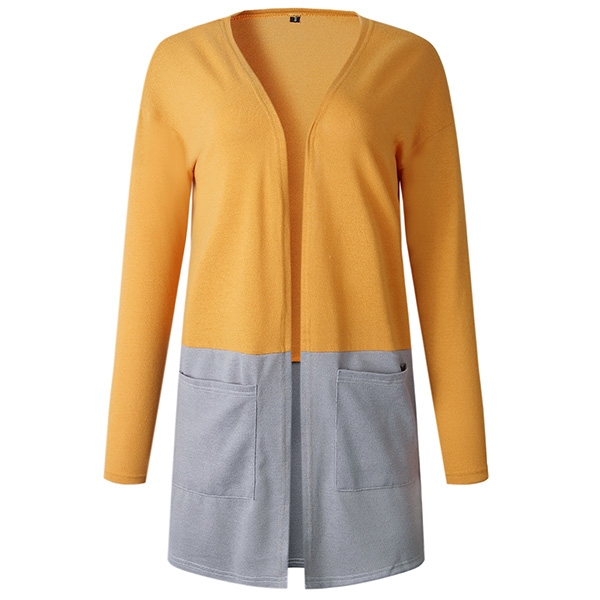 Contrast color style,finished with long sleeve,front pockets and a clean silhouette,this knit
