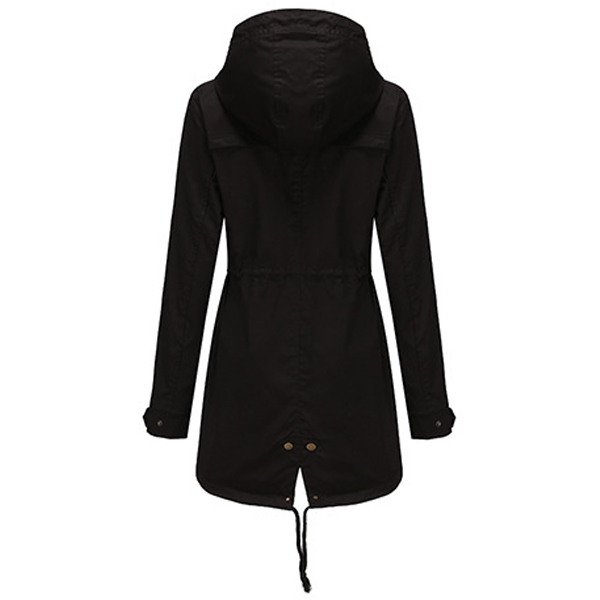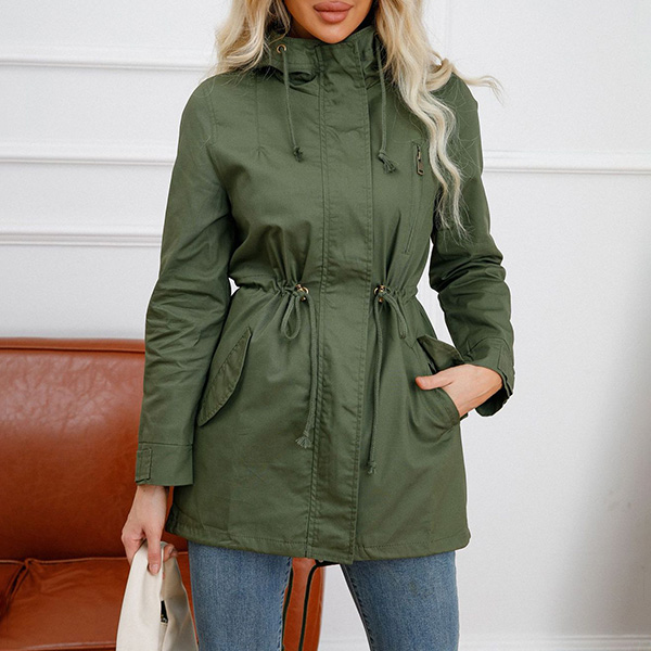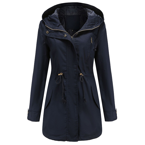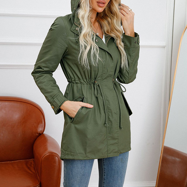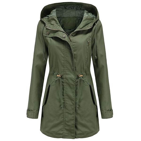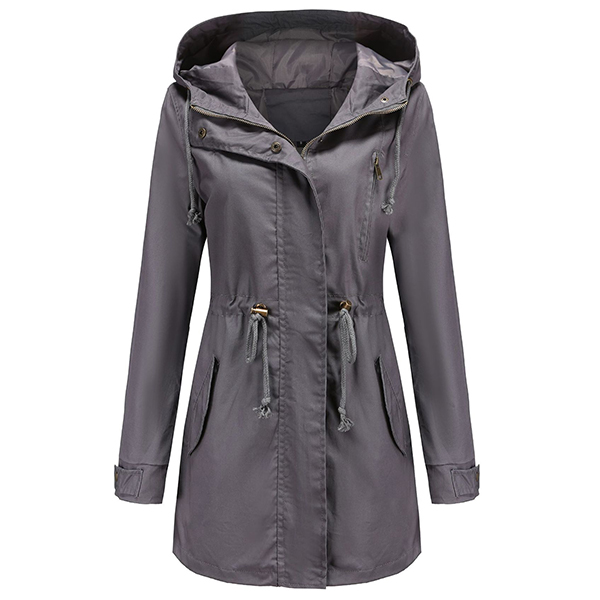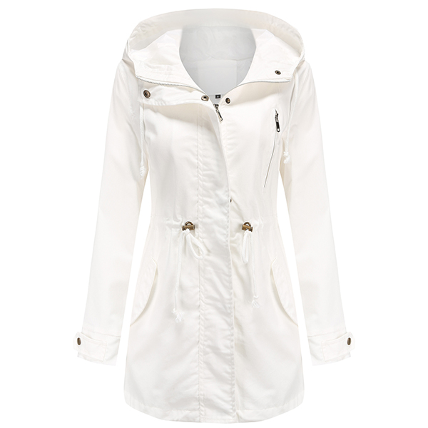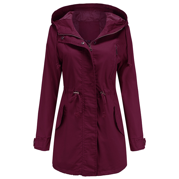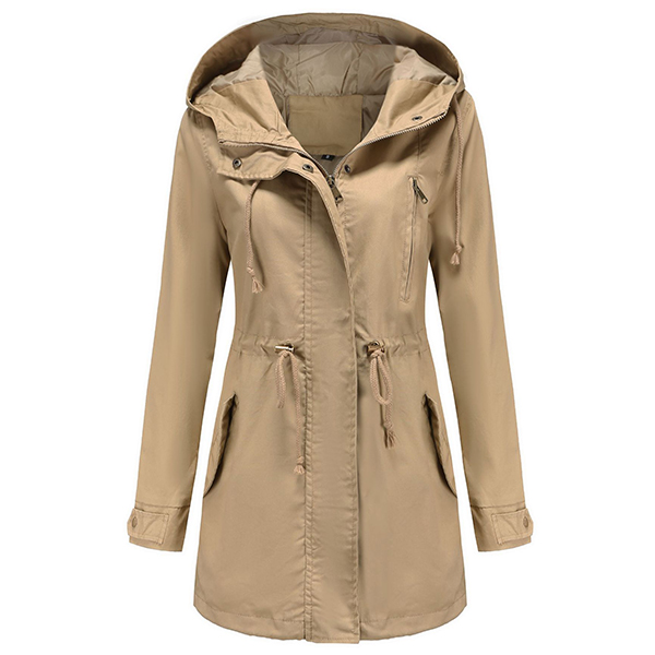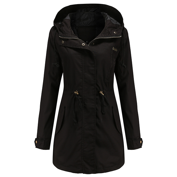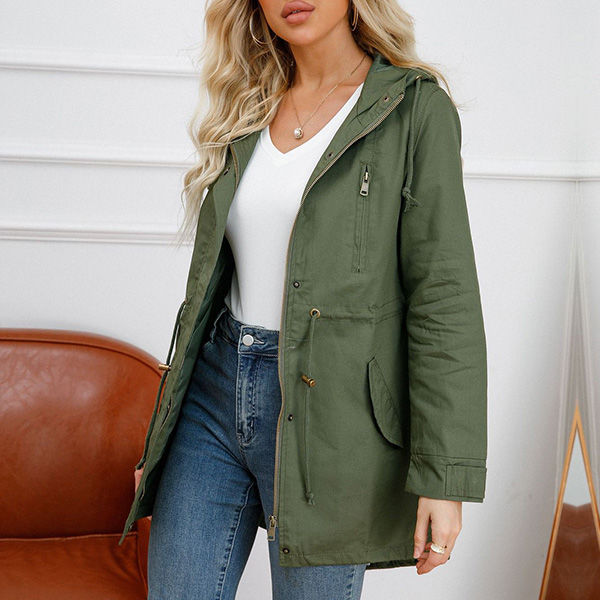 enhances its charm. Designed with long sleeve,hooded silhouette and front zipper closure,this jacket is