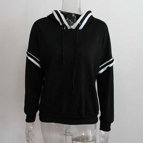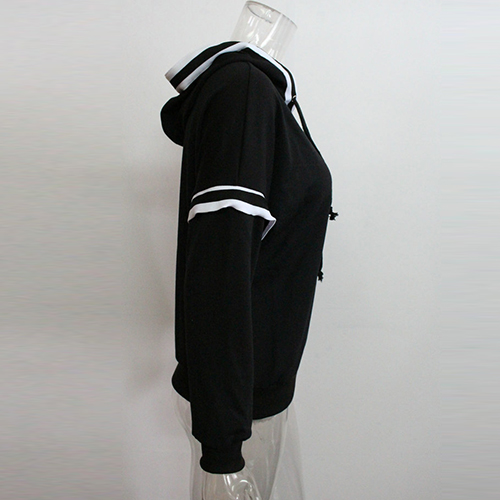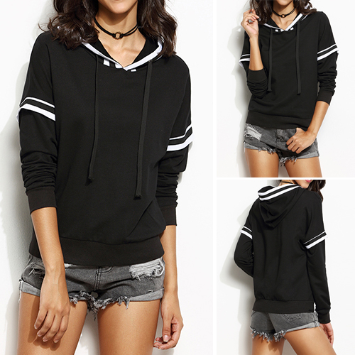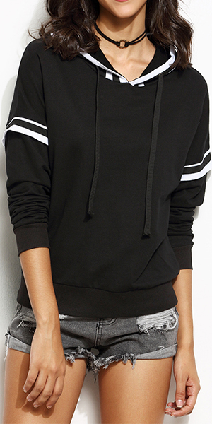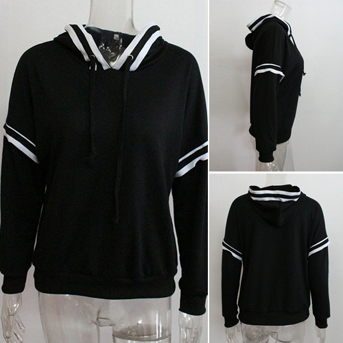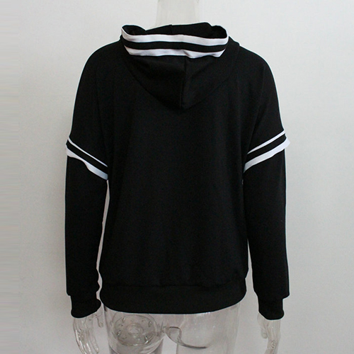 Fashion black-white striped spliced design lets this piece become another classic creation. Hooded,