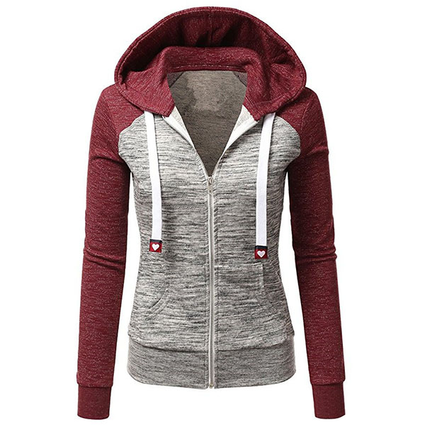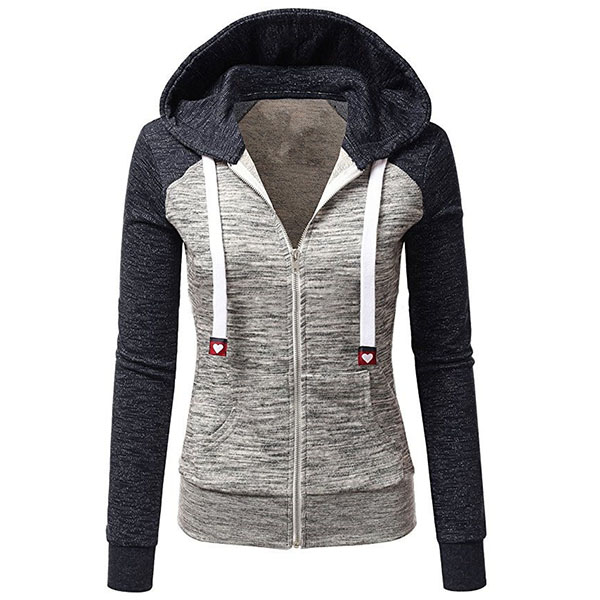 Finished with long sleeve,hooded silhouette and front zipper closure,simple,classic and refined. The contrast color design