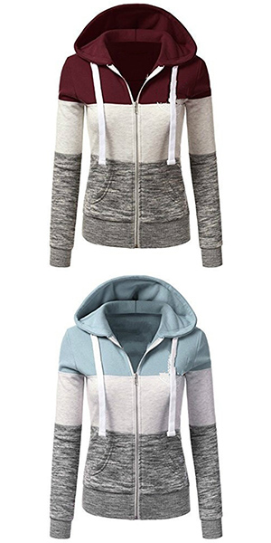 Contrast color design makes it so stylish and popular. Designed with long sleeve,front zipper