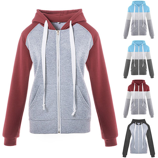 So we suggest you this sweatshirt coat. Contrast color style,with long sleeve,hooded silhouette and