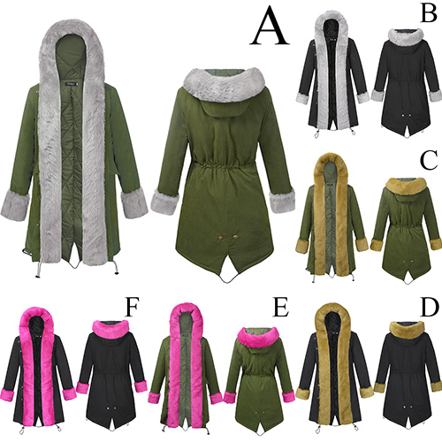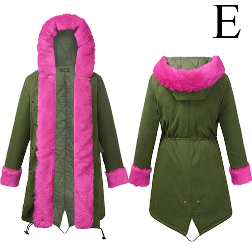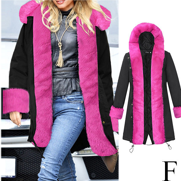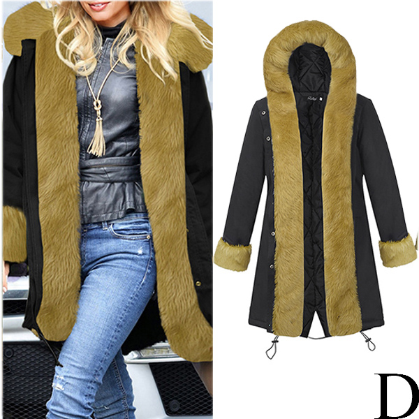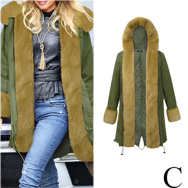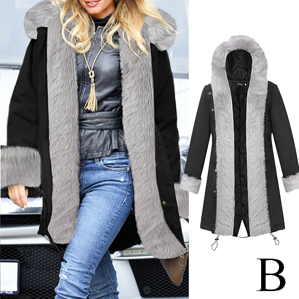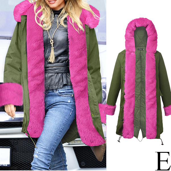 cozy fur material, with contrast color, hooded and long sleeve design, this padded coat can give you the best