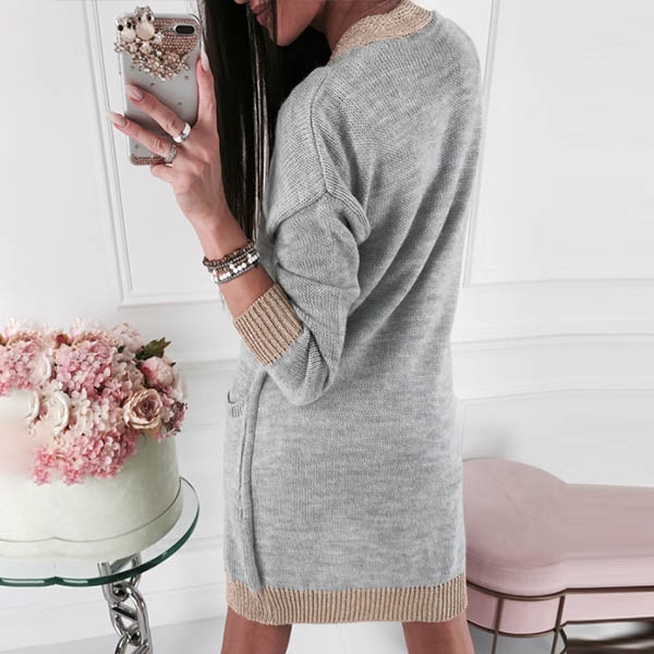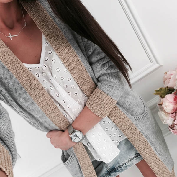 When the cold days hit,you can invite this knit cardigan to your wardrobe. Contrast color element
