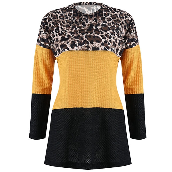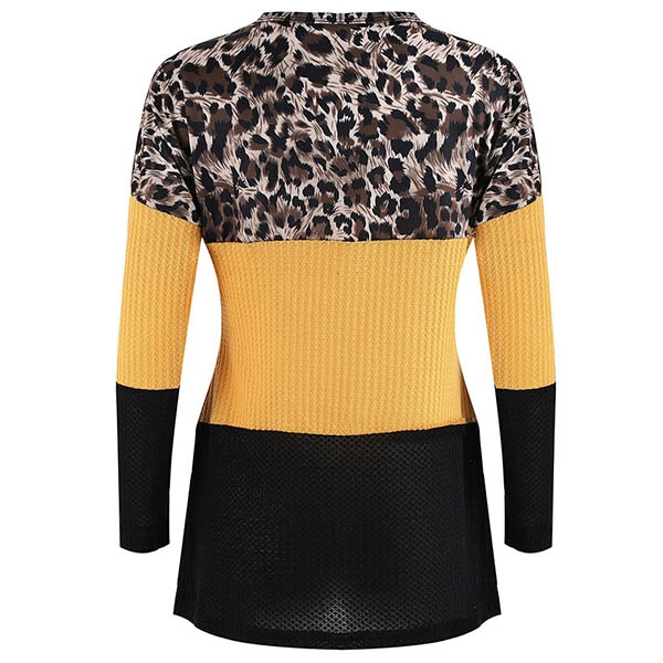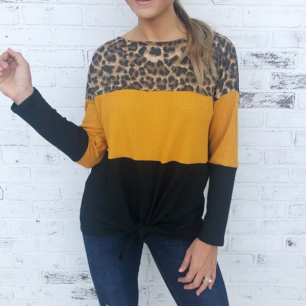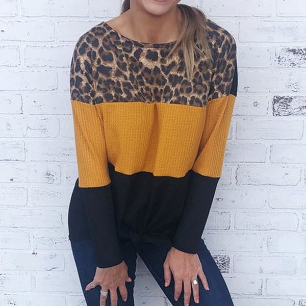 leopard print element design. When the days get a little cold,this long sleeve knit top would be your