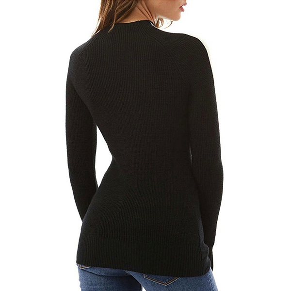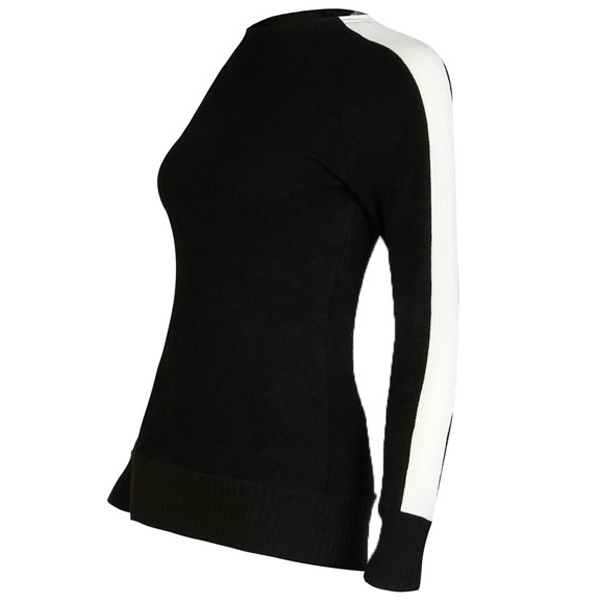 Combines of white and black tone,classic yet stylish. This knit top is finished with long sleeve,mock neck