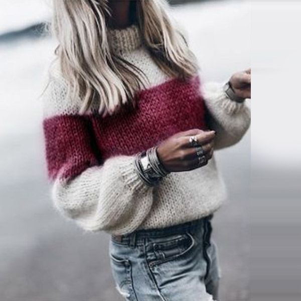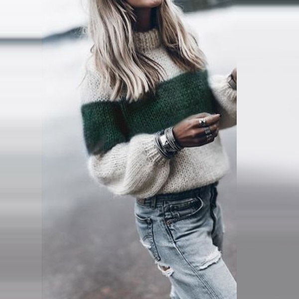 Fashion Contrast Color Long Sleeve Mock Neck Sweater