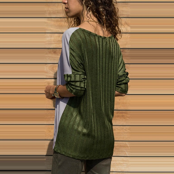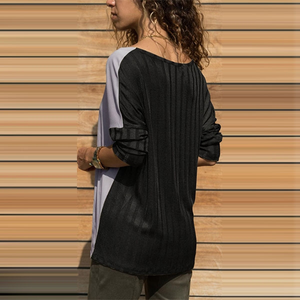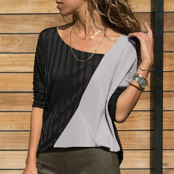 You can enjoy the cozy and style which is offered by this t-shirt. Contrast color and oblique v-neck design
