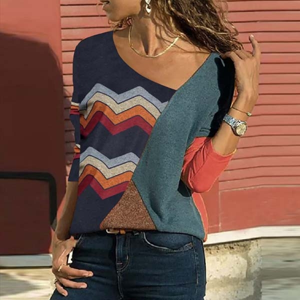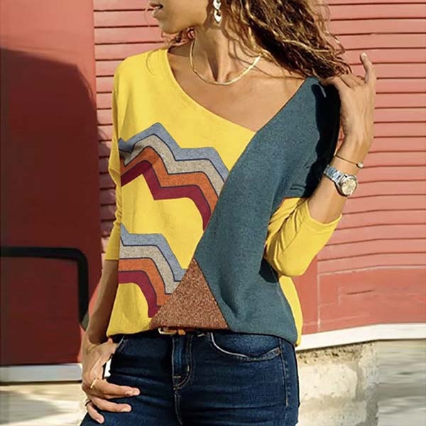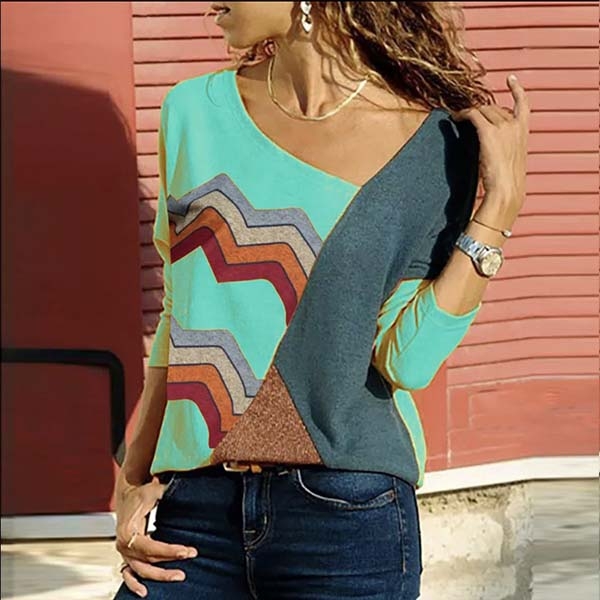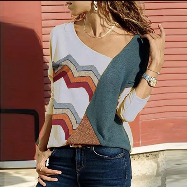 At your first sight,you are sure to be attracted by this chic and unique t-shirt. Contrast color design is