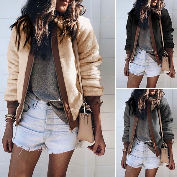 In these cold days,this plush coat would be your new favourite. Contrast color design makes it look