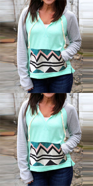 Contrast color style,with chic and abstract printed pattern,this hoodie is a perfect choice