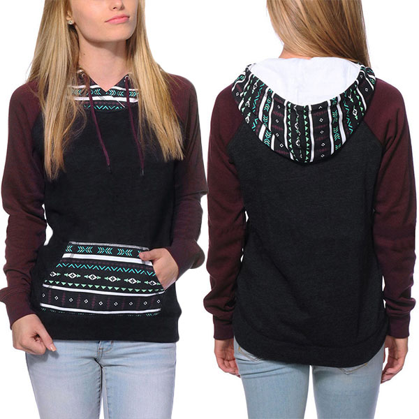 material and exquisite embroidered pattern,with a big pocket and long sleeve.Contrast color style,