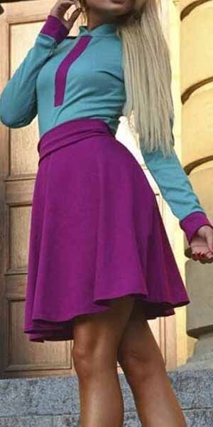 Contrast color style,with long sleeve,round neck and high waist design,classic and stylish.