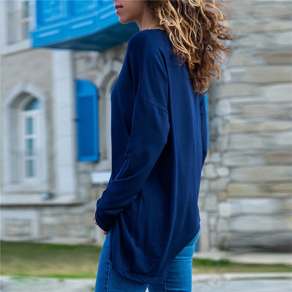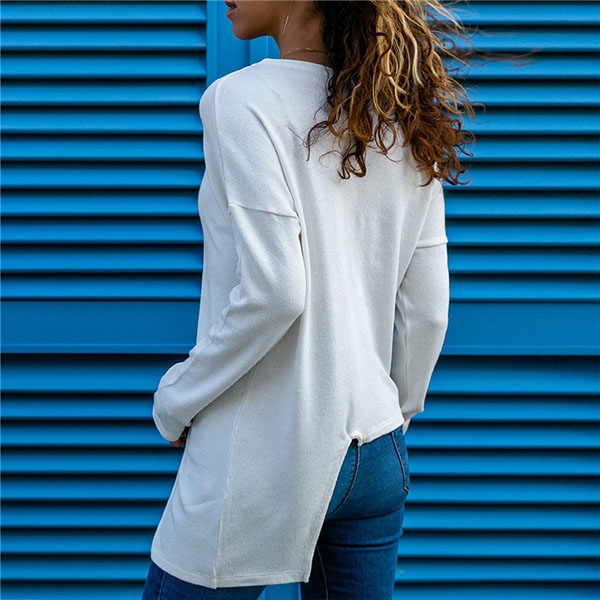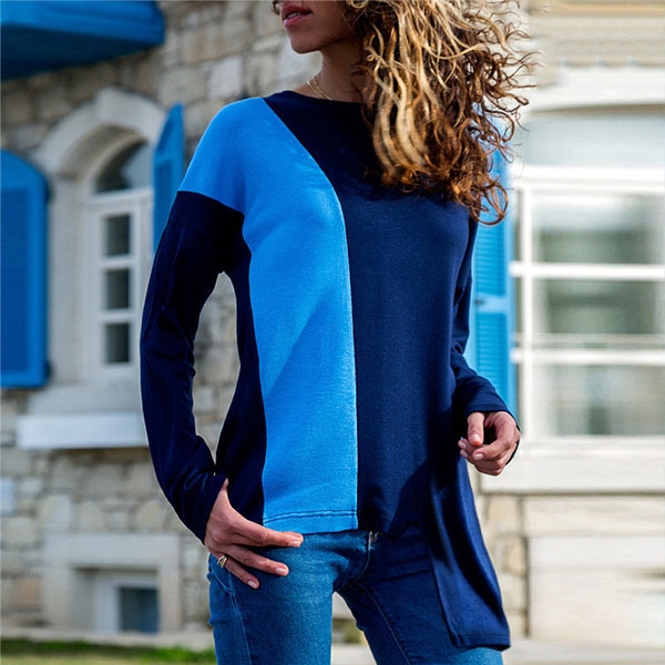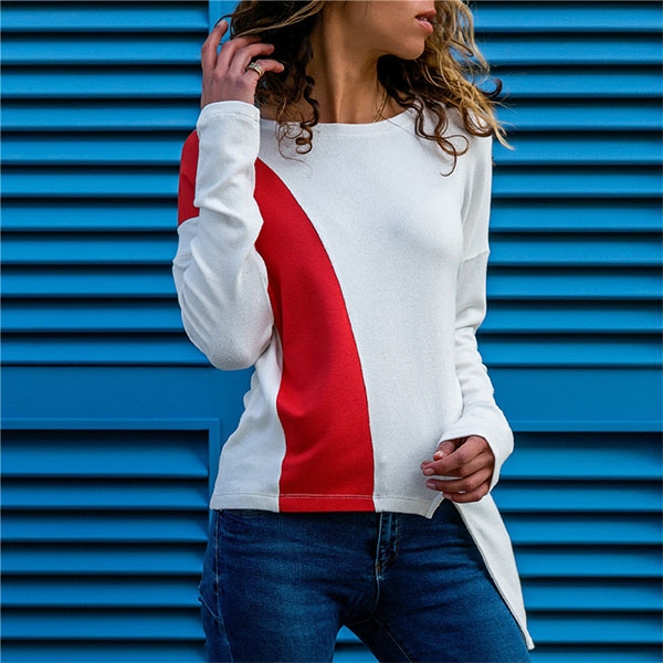 The contrast color and irregular hem design break the traditional design style,while the soft