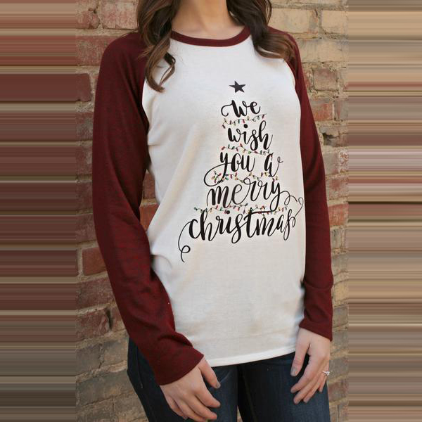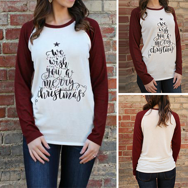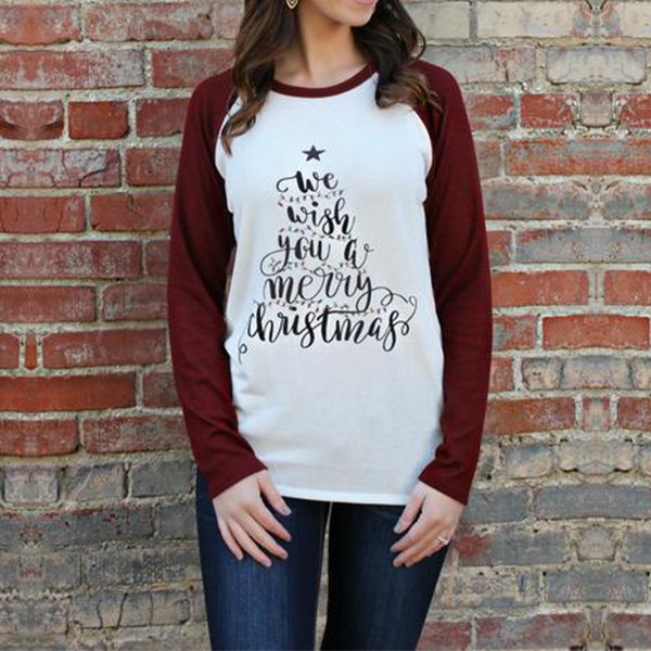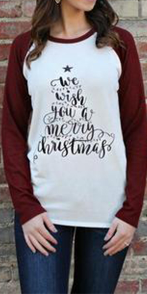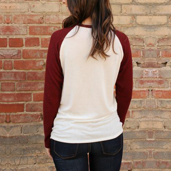 Fashion Contrast Color Long Sleeve Round Neck Letters Printed T-shirt