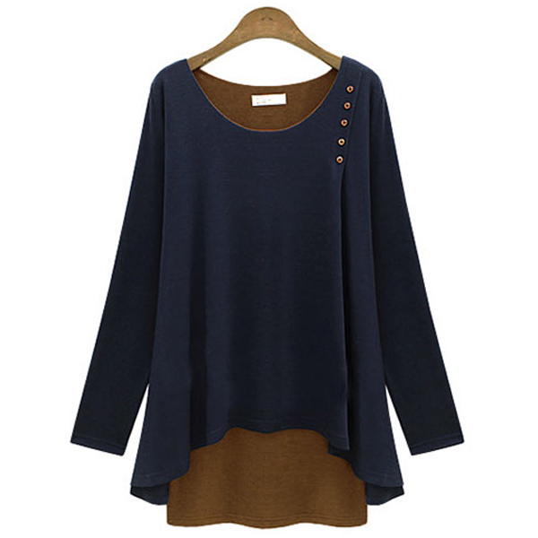 Contrast color and mock two-piece design style make this piece look so stylish and distinctive. Crafted from soft and