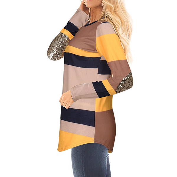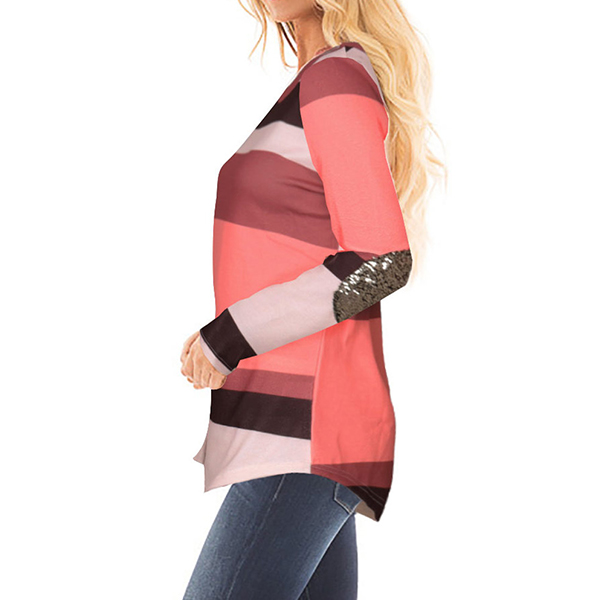 while its soft and breathable fabric can promise you a comfortable day. Moreover,the sequin spliced details at sleeve