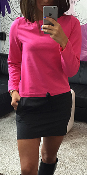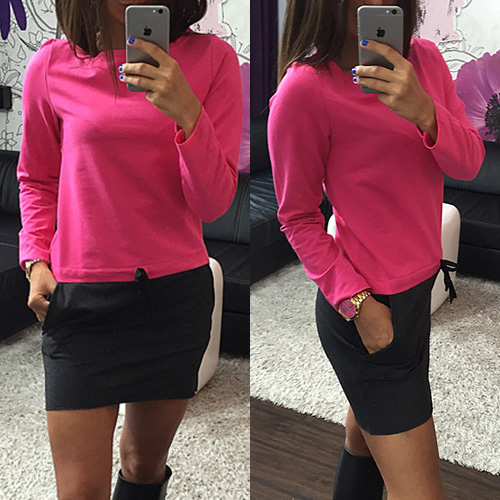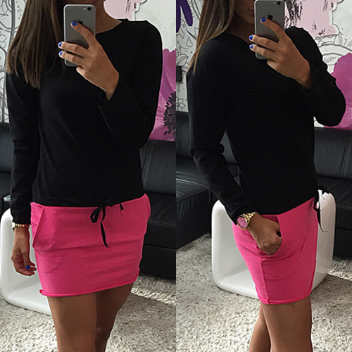 Contrast color style,with long sleeve,round neck and slim fit design,simple but stylish. Paired