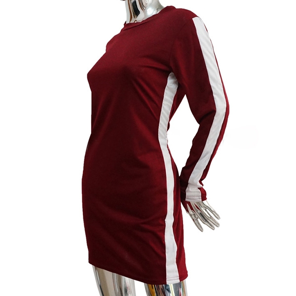 That's why we love this dress. Designed with contrast color,long sleeve,round neck and a fit silhouette,
