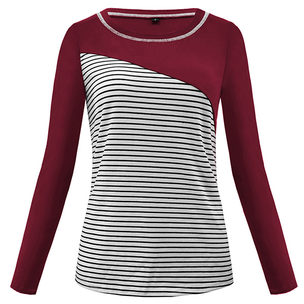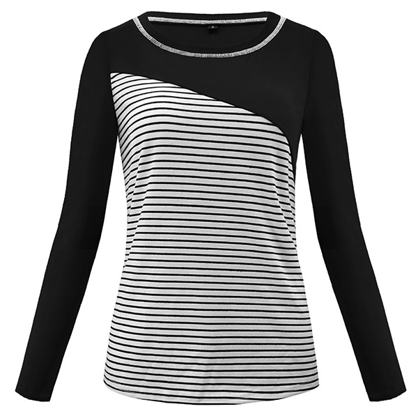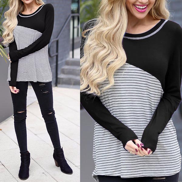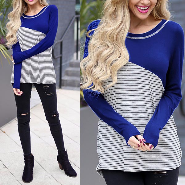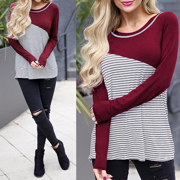 Cozy yet stylish,that's why we love this t-shirt! The contrast color and striped element design make this