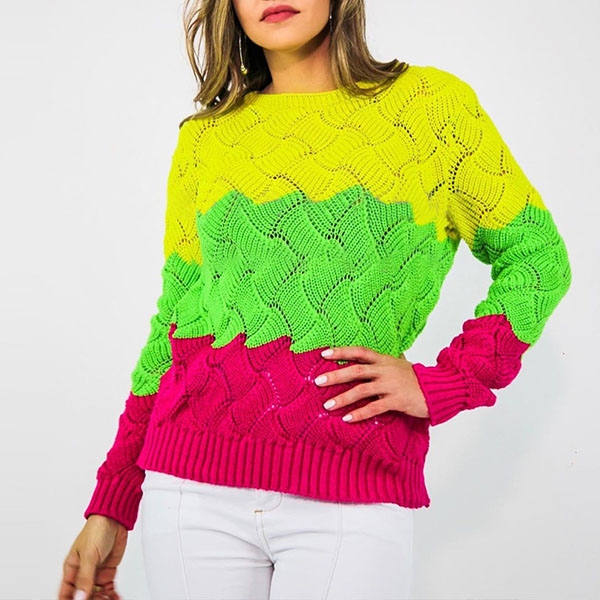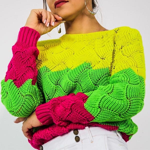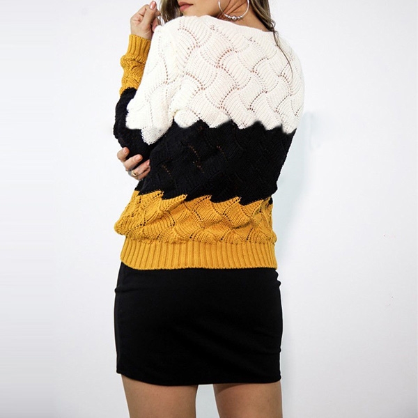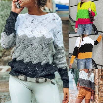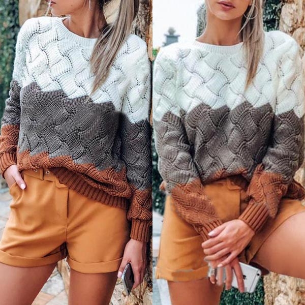 in your ensemble? This piece boasts contrast color element,with long sleeve and round neck design,