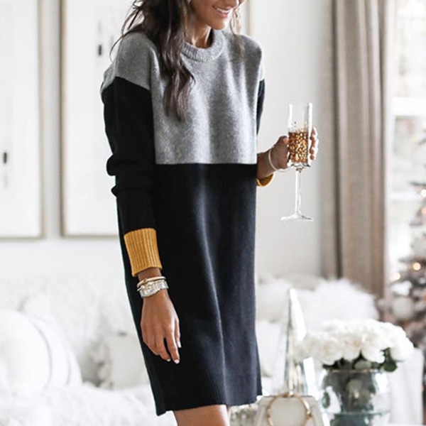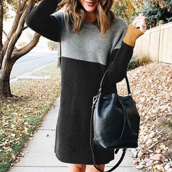 This sweater dress is perfect fit for these cold days. The contrast color design breaks the simple and dull