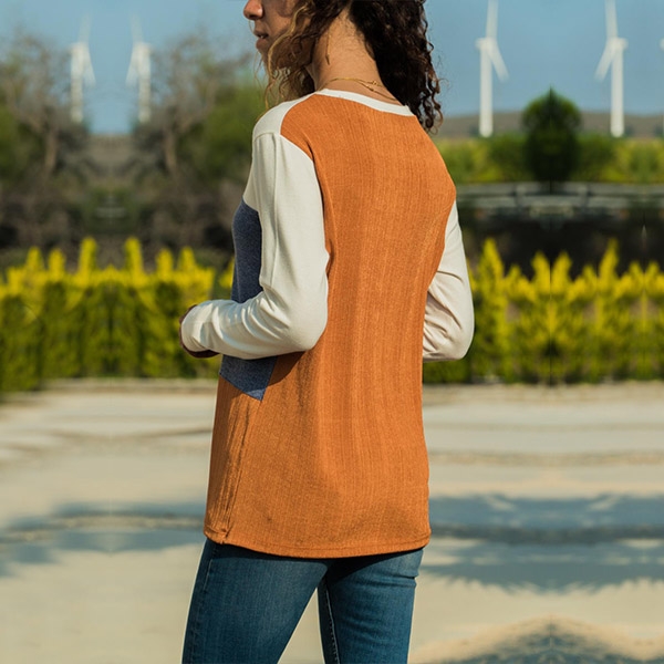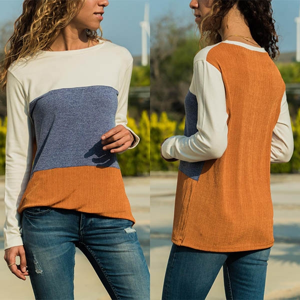 wardrobe. Contrast color style,crafted form soft and breathable fabric,with long sleeve and round