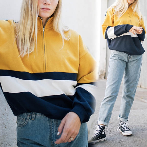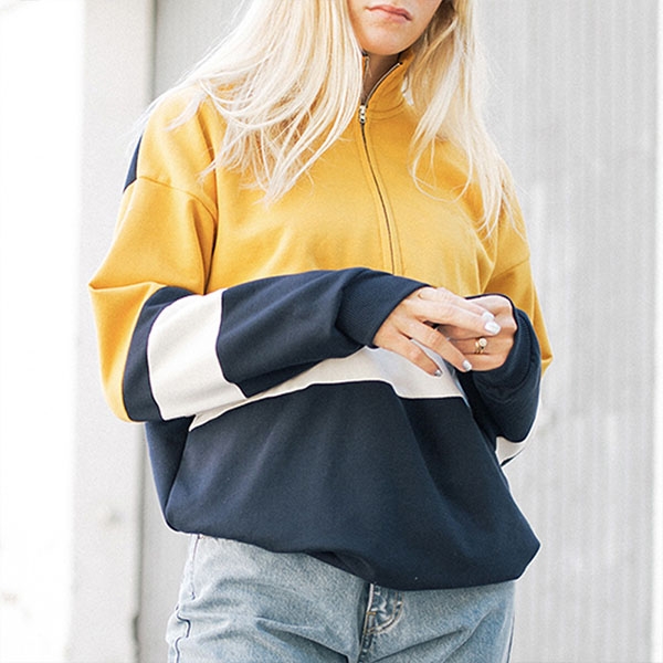 Stay casual,relaxed yet stylish in this sweatshirt. Contrast color style,finished with long sleeve and stand collar,