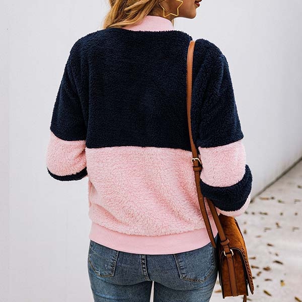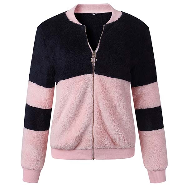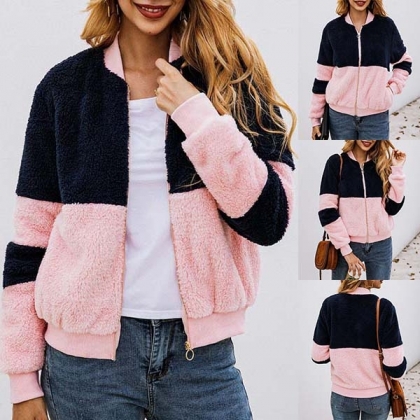 Contrast color style,finished with long sleeve and stand collar design,simple yet stylish. The front zipper