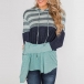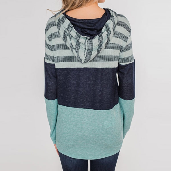 Contrast color element and striped spliced design make this piece look so attractive,