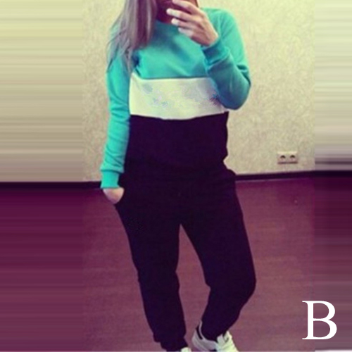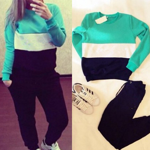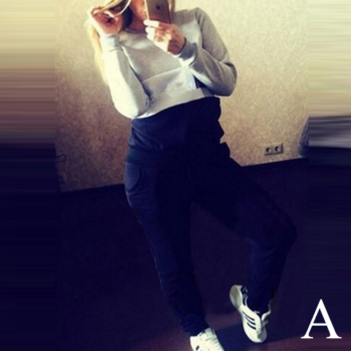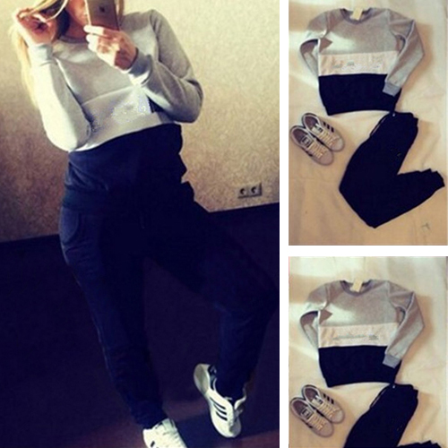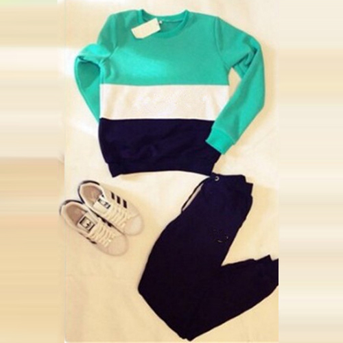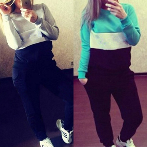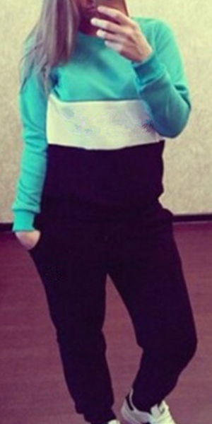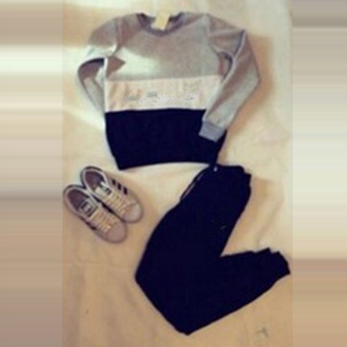 long sleeve tops and a solid-coloured drawstring waist pants. Simple and chic style, accompanied with the