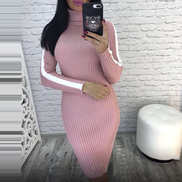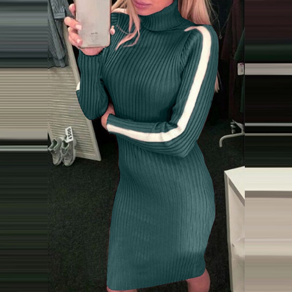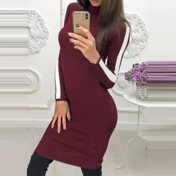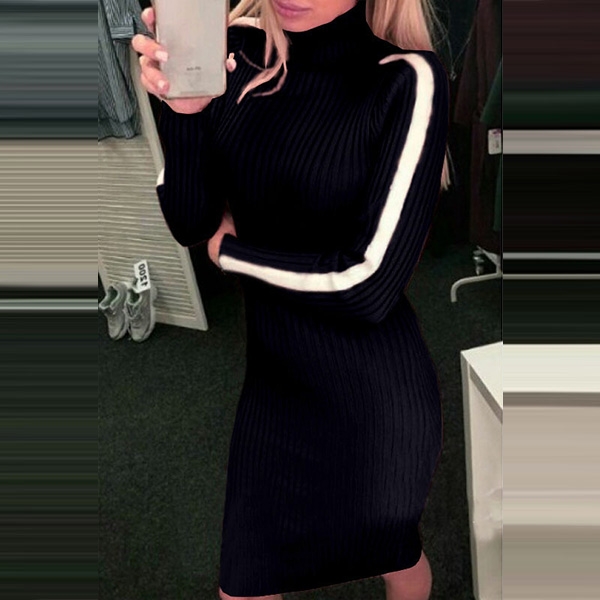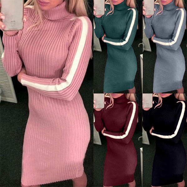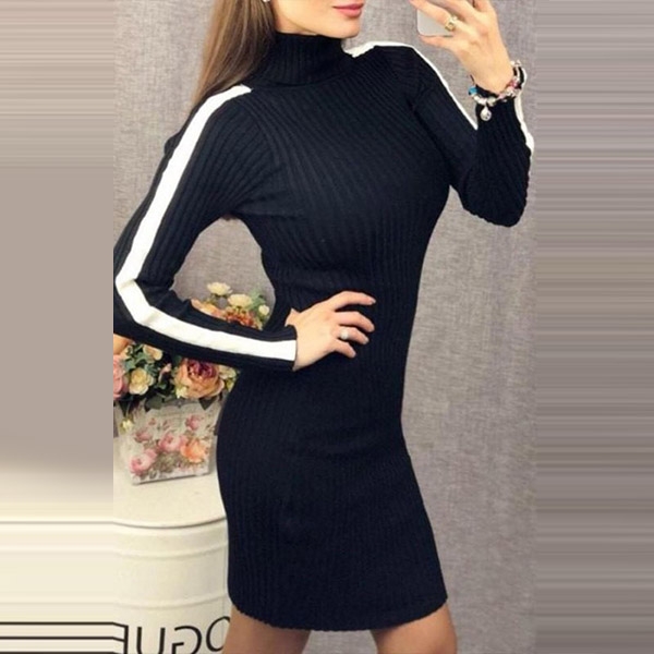 simple and dull. Finished with long sleeve,turtleneck and a fit silhouette,this dress can showcase your slender