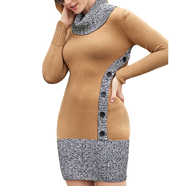 When the cold season hits,this sweater dress is worth to arouse your attention. Contrast color style,