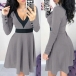 Contrast color style,with long sleeve,v-neck and high waist design,this dress can showcase your