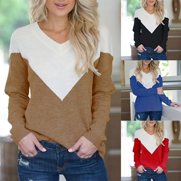 This knit top is designed with contrast color element,which enriches the design style as well as enhances its charm.