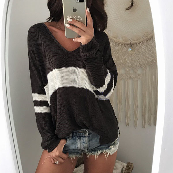 designed with long sleeve,v-neck and a loose silhouette,this sweater can keep you cozy,warm and stylish.