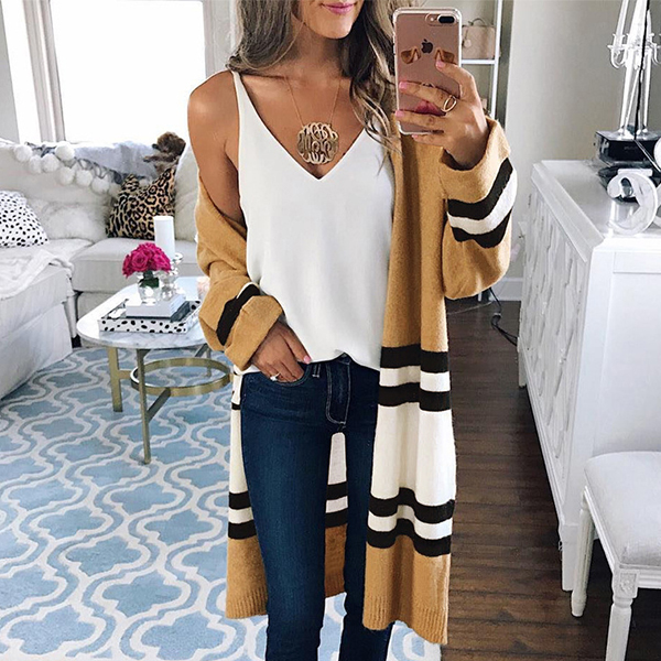 with long sleeve and an open-front style,this cardigan allows to be matched with different style outfits to give