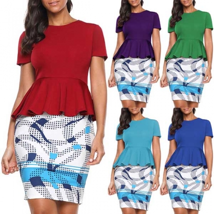 Finished with short sleeve,round neck and a fit silhouette,this dress of course can portray your elegant
