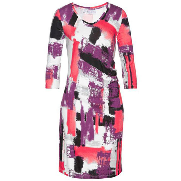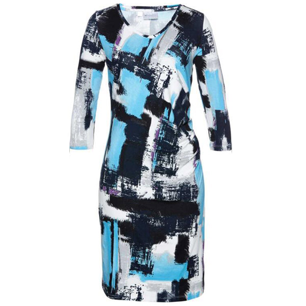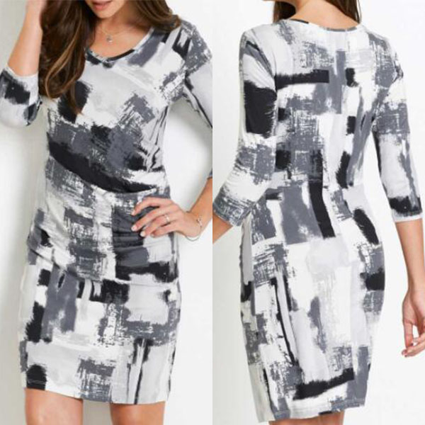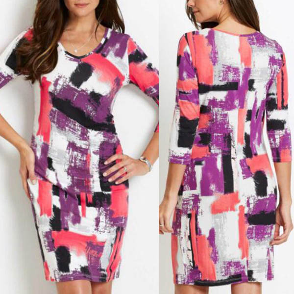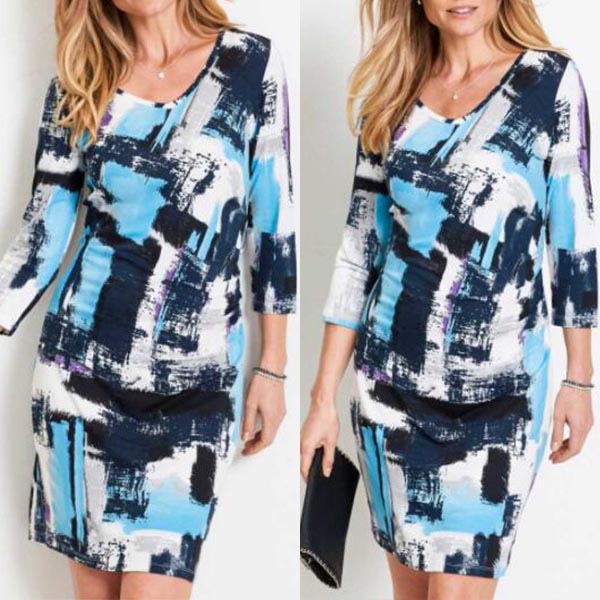 It in a polyester woven, with round-neck,3/4 length sleeve ,and contrast color style.High quality and