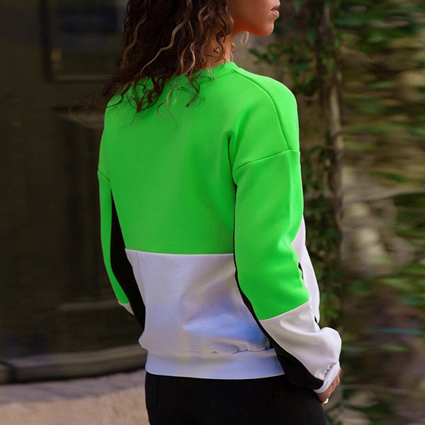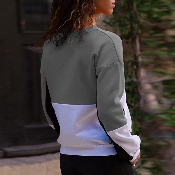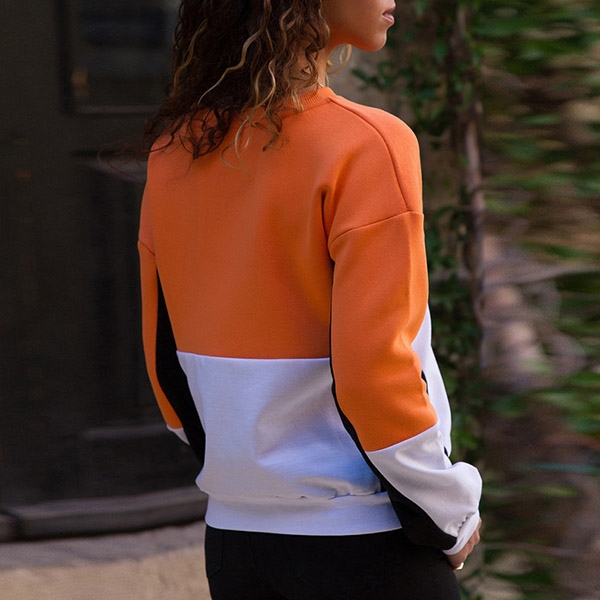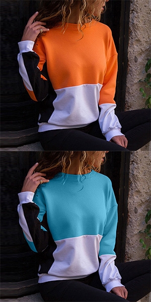 breathable polyester material woven,come with long sleeve,contrast color and round neck.Fabric spliced design that adds too charm