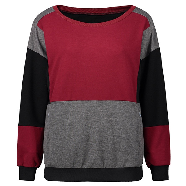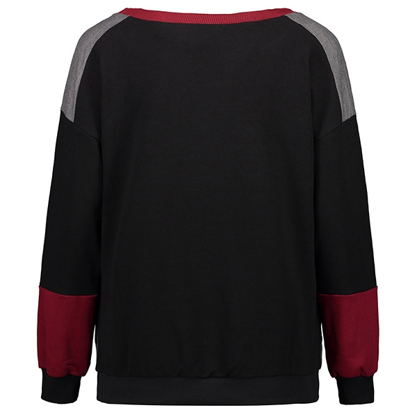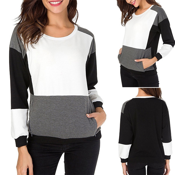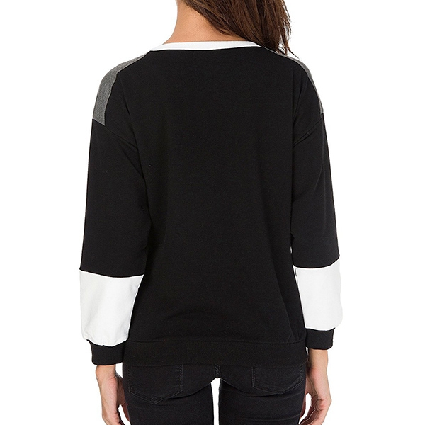 Feathers with round neck,long sleeve and contrast color, simple and concise.