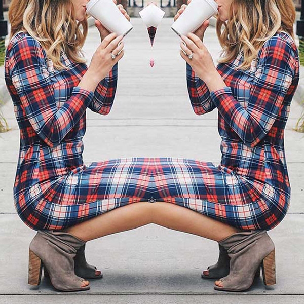 This dress is a good choice for your weekend wardrobe collection. Featuring contrast color plaid material, long sleeves and