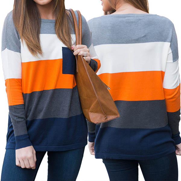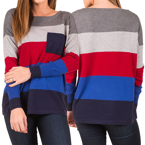 Do you like contrast color striped sweater, my girl? If you like it, maybe you can try this one.Crafted with